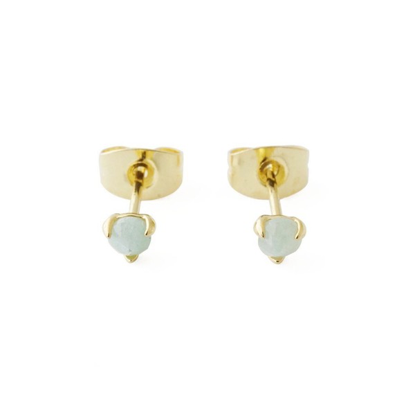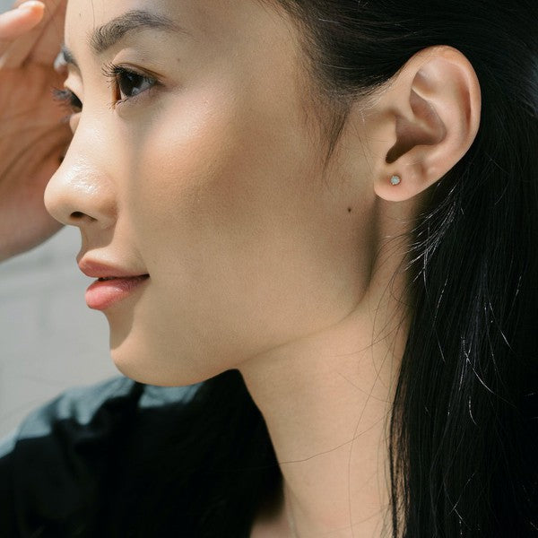 A pair of delicately set, tiny jade crystal stud earrings. Gorgeous when worn alone or alongside your favorite studs. Jade is a gemstone known for manifesting and creating wealth and balance.